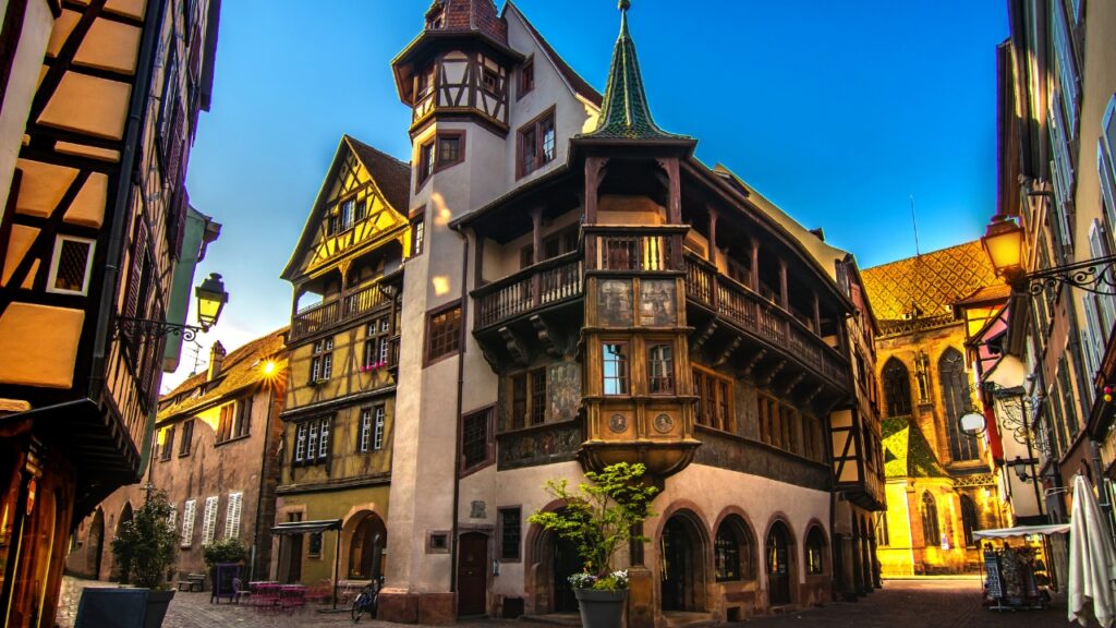 Colmar é uma cidade rica em história, e sua arquitetura reflete séculos de influências culturais. A Casa Pfister, uma das mais icônicas da cidade, é um exemplo impressionante da arquitetura renascentista, com suas esculturas detalhadas e varandas decoradas. Outro destaque é a Casa das Cabeças, uma construção do século XVII que deve seu nome às mais de 100 cabeças esculpidas que adornam sua fachada.