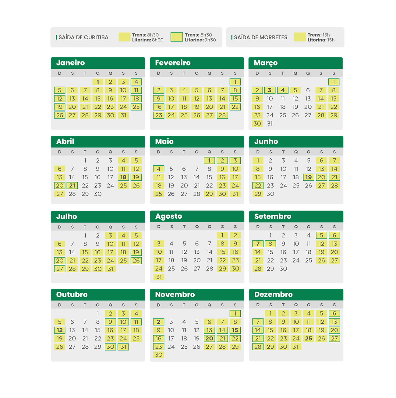 Confira as datas de saída dos trens e programe-se!