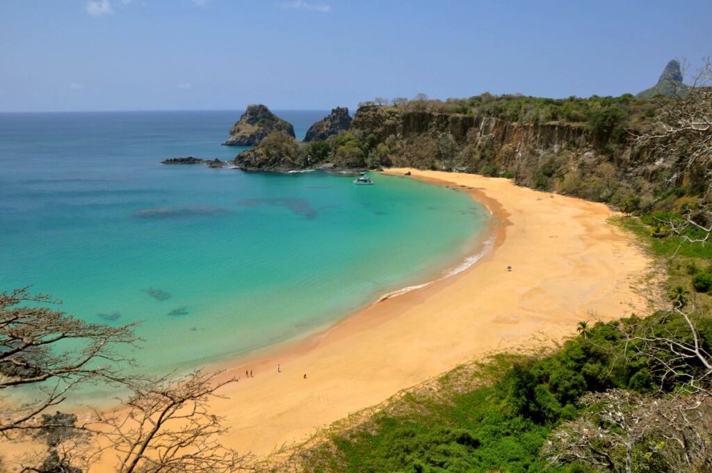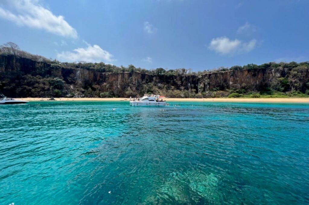 Considerada uma das mais belas do mundo, a Praia do Sancho possui águas calmas e rasas perfeitas para crianças nadarem e observarem peixinhos coloridos. Foto: Bruna Scirea – Melhores Destinos